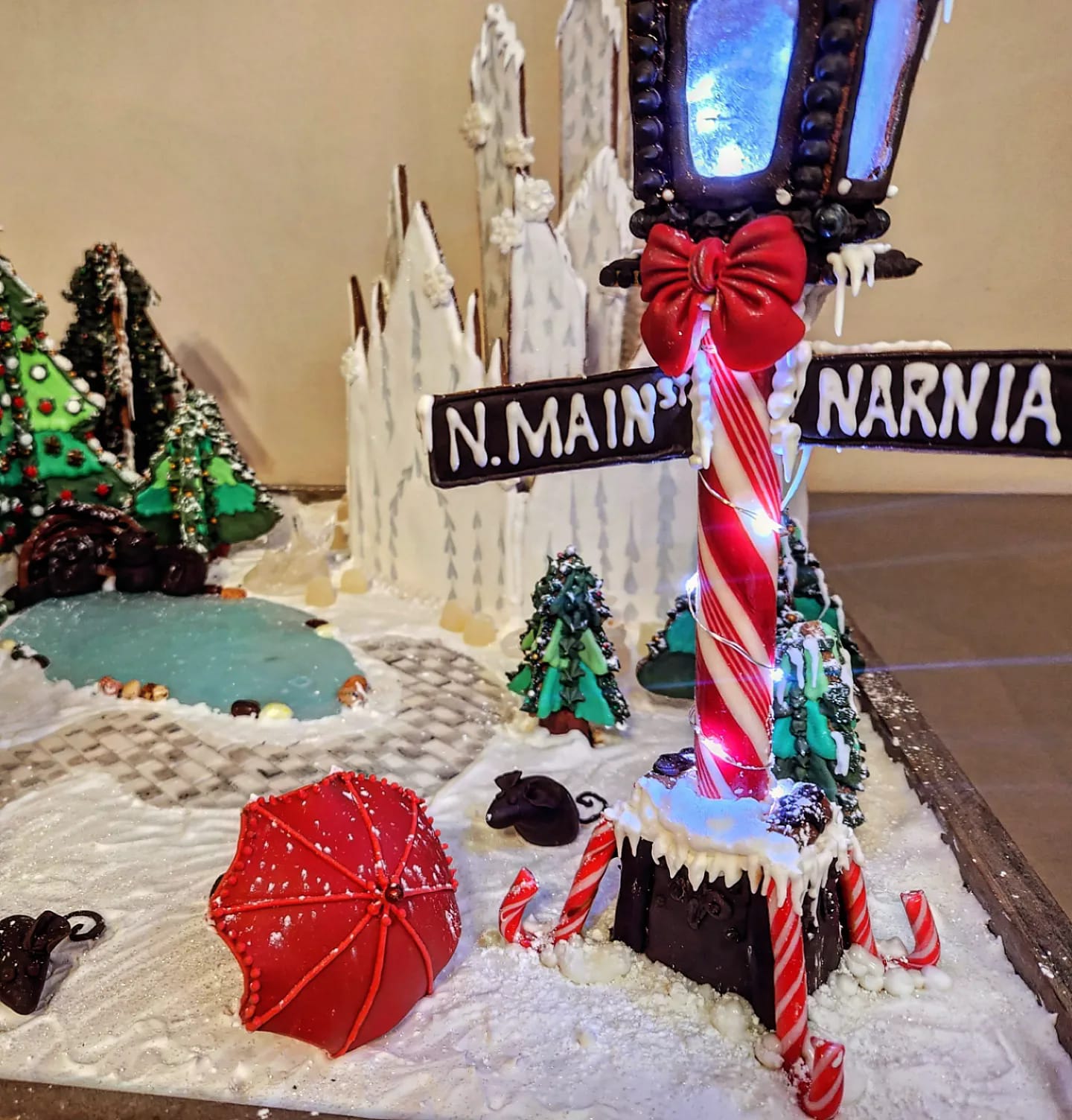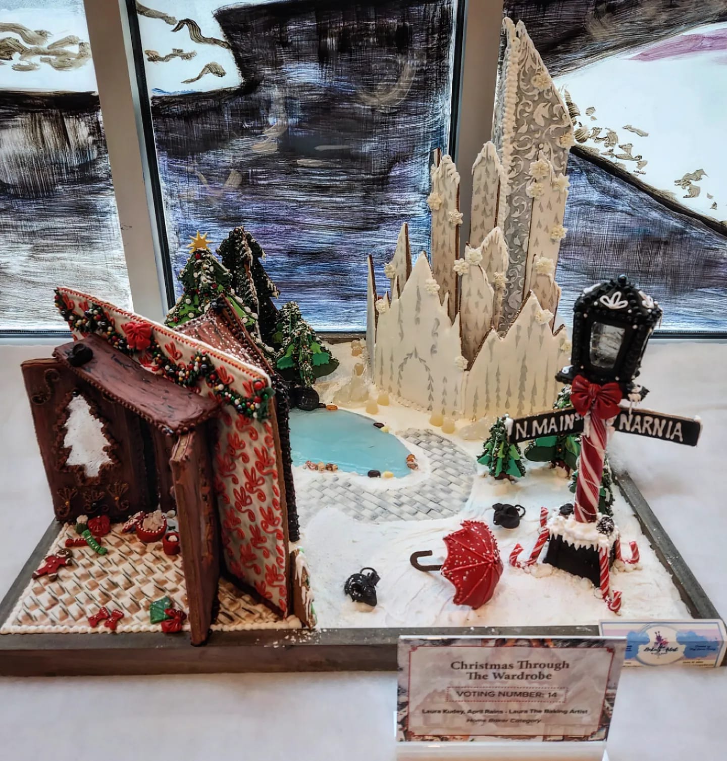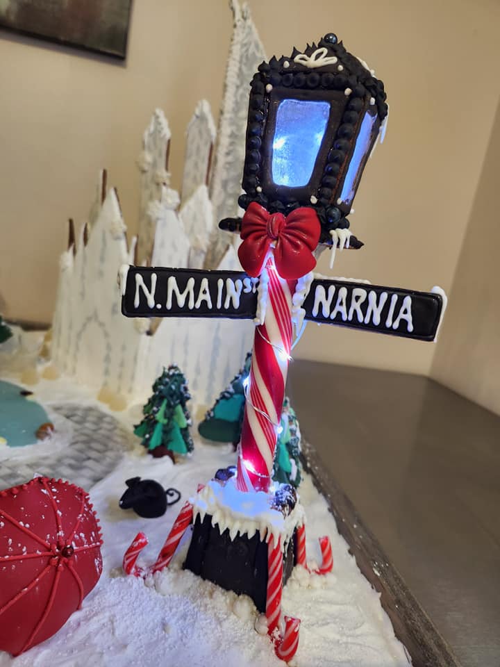 In December, 2023, I entered the 2nd Annual Holiday Gingerbread Competition hosted by the Residence Inn & Springhill Suites in downtown Greenville, SC. My wonderful friend April Rains was my partner, and a huge help to bring us not one but TWO winning spots. Our gingerbread creation “Christmas Through the Wardrobe” took first place as Media Winner and second place as People’s Choice winner!